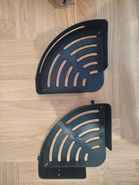 Vendo due mensole per la doccia e o per il bagno in generale, di colore nero, in plastica, con i ganci adesivi da attaccare a parete. Le misure approssimativamente sono 21 cm x 21 cm, altezza 5,3cm (vedere foto). Sono nuove mai utilizzate. Regalo un terzo set di ganci come si vede in foto. Sono disponibile alla consegna in diverse zone di Roma.