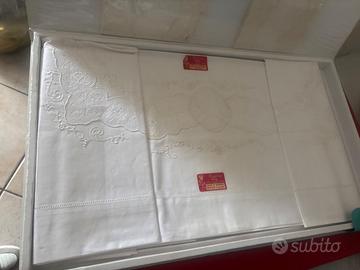 Due paia di lenzuola da corredo della filo d’oro ricamati a mano