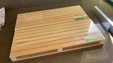 Due pallet in vero legno per alimenti, si usano per poggiare cibi per gli aperitivi, ancora sigillati. Si vendono insieme