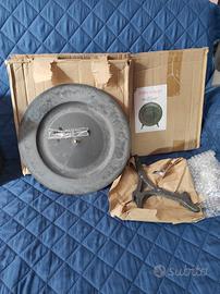 Due piatti orologio finto peltro con meccanismo e lancette.