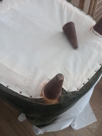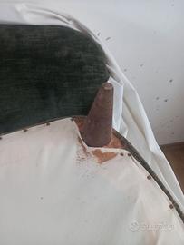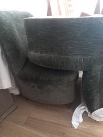 Due poltroncine in velluto verdone, basse. Occorre effettuare il trattamento antitarlo, si vede dalle foto, una gamba è spezzata.