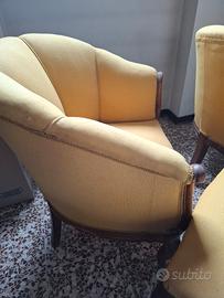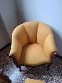 Poltrone e poggiapiedi del salottino di lettura della nonna. vanno benissimo.anche in camera da letto. rivestimento come nuovo dato che sono state sempre coperte .ottima fattura e ottimo legno .