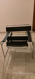 Vendo due poltrone Vasilij in cuoio nero e struttura in tubolare di acciaio nichelato, La poltrona Vasilij venne disegnata da Marcel Breuer nel 1925 quando era direttore del laboratorio del legno presso il Bauhaus di Dessau e rilanciata negli anni’60 da Dino Gavina. Le poltrone sono usate ma in buono stato di conservazione, con qualche segno di usura dovuto al tempo. Misure: larghezza 78 cm, profondità 70 cm, altezza 73 cm. La seduta ha un’altezza di 43 cm davanti e di 30 cm sul retro. Le poltrone sono visibili a Bologna in zona facilmente raggiungibile in auto.