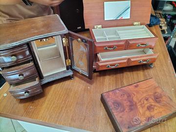 vendo due portagioie con carillon vintage e una scatola porta carte da gioco vintage. 35€ l'uno o 90€ tutti insieme.