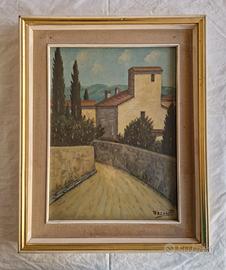 Vendo coppia di quadri coordinati raffiguranti scorci toscani, olio su tavola (compensato), firmati in basso a destra “Terzani P.”.