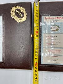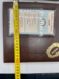Imperdibile coppia di pezzi da collezione! 🤩 Si tratta di due miniature originali su lastra d'argento dell'artista Alfredo Zecca, realizzate dalla prestigiosa WENK (Serie Argento). Perfetti per impreziosire qualsiasi angolo della casa o per un regalo di lusso e valore! Dettagli che fanno la differenza: • 🎨 Autore: Alfredo Zecca (Noto Paesaggista) • 🖼️ Titoli: "Lungo il canale" e "Verso il villaggio" • ✨ Materiale: Riproduzione su ARGENTO con tecnica esclusiva Wenk. • 📜 Certificato: Entrambi i pezzi sono completi di Certificato di Garanzia e Convalida Wenk. • 🔢 Rarità : Edizione limitata di soli 1500 esemplari (i numeri 96 e 124). • 📏 Dimensioni: Cornice completa circa 20 \times 22 \text{ cm}. NOTA SULLE CONDIZIONI: Le opere in argento sono perfette. Si segnalano soltanto piccoli aloni/segni del tempo sulla cornice interna (visibili nelle ultime foto, se le carichi). Oggetti rari, venduti in coppia a prezzo affare! NON VENDO SINGOLARMENTE. Prezzo per la coppia affare! Affrettatevi! 🏷️ #Wenk, #Argento, #AlfredoZecca, #Miniatura, #Quadro, #Arte, #EdizioneLimitata, #Collezione, #Vintage, #ArredamentoLusso, #IdeaRegalo, #Rarità , #WenkArgento