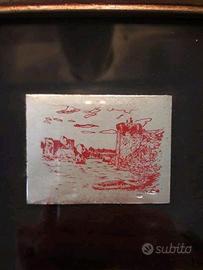 Il sangue di bue è un pregiato e raro corallo orientale di colore rosso scuro.Ogni quadro é certificato sul retro col marchio e logo TI.EMME.I quadretti d'argento all'interno poggiano su uno sfondo in velluto nero.Le cornici sono in legno,color dorato ed argentato.Purtroppo due angoli della cornice di uno dei due quadretti presentano una lieve sbeccatura facilmente riparabile.Dimensioni:
