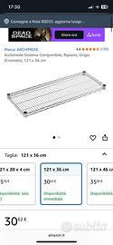 Due ripiani per il sistema di scaffalatura Archimede, 121x36. Prezzo: 20 l’uno o 30€ entrambi. Ritiro a Firenze in zona Careggi.