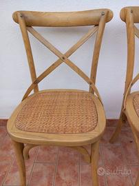 Coppia di sedie cross in legno di olmo e rattan naturale, in condizioni perfette, vendo a Monfalcone.