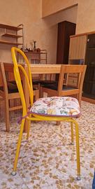 Due sedie gialle in metallo con cuscini