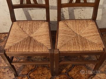 Coppia di sedie in legno con un design classico e una seduta in paglia intrecciata. Città: Cuneo. No spedizioni. Ritiro a carico dell'acquirente.