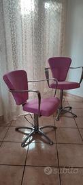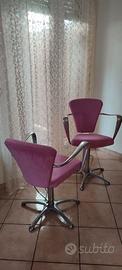 Due sedie da parrucchiere barbiere anni 70 con la leva per alzare e abbassare la seduta. Rinfoderata con Alcantara rosa dal tappezziere. Vendo in blocco unico.