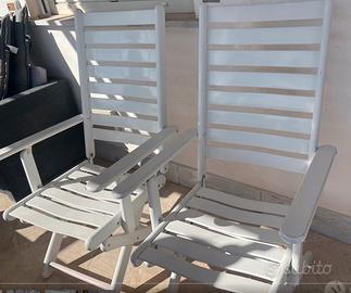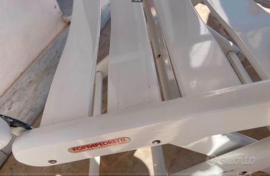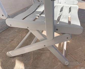 Coppia due sedie Foppapedretti in legno massello laccato bianco. ben tenute qualita' foppapedretti indistruttibili, sono comode, reclinabili posizione sdraio e anche regolabili in altezza, comodi braccioli, solide e eleganti. Le sedie sono pieghevoli e chiuse occupano poco spazio. adatte a spazi esterni, giardino terrazzo, etc.. Prezzo per la coppia 180