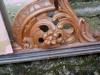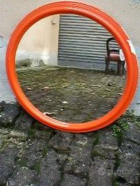 DUE SPECCHI : a) Grande antico, b) tondo modernariato Due specchi per arredamento: a) Grande specchio rettangolare, d'epoca (probabile anni '30-40) senza macchie o aloni con fregi sobri e geometrici agli angoli dello specchio. Montato su cornice in legno con elaborazione simil floreale semplice. Piccolo tratto mancante. Con base adatta per appoggio su comò. misure: 124 x 102 e con cornice: 130 x 118 Piede d'appoggio: 176 x 6 eur 425 tratt. (sconto 55% sulla valutazione) b) Specchio medio tondo anni '60 -'70 Cornice in legno arancione diametro 69 , area interna specchio Ø 58 Nessuna macchia o segno. eur 175 tratt. Visione e ritiro gratuito in Torino. Spedizione solo se curata dall'acquirente, con proprio incaricato per imballo e trasporto.