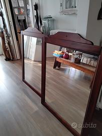 vendo due splendidi specchi uguali con cornice il legno massello tenuti benissimo in casa perfetti.