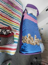 Vendo struttura del letto doppia (entrambe color viola), usata ma in buone condizioni, stabile e funzionale, ideale per cameretta o camera da letto.