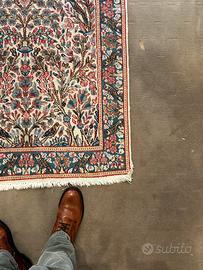 OTappeto orientale, probabilmente turco (Hereke) o persiano (Qom, Kashmir), Il design centrale raffigura l'Albero della che rappresenta la crescita spirituale, la forza e la connessione. Il disegno include anche un motivo a vaso e intricati dettagli floreali e geometrici