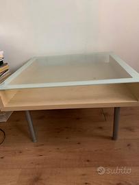 tavolini: 77×75 h45 prezzo €80 tutti e due, separati €50 l'uno credenza a vetri 120×90 profonda 40 prezzo €50 credenza bassa con ripiano in vetro 120×40 h74 prezzo €50