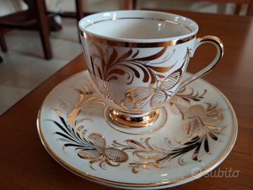 Vendo due tazze da the in porcellana marca Furstemberg degli anni '50 del XX sec; piattini e tazze sono decorate con motivi floreali in oro zecchino; nessun difetto