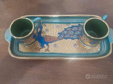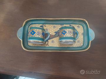 Due tazzine con vassoio porcellana oro zecchino