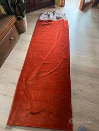 Lunghe 2.38 allungabili , lunghezza totale 2.53, sono in velluto arancio intenso, parte alta in bouclé. Usate 1 stagione invernale. Velluto costa 100€ sl metro.