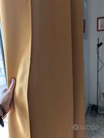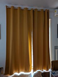 Vendo due tende in perfette condizioni color giallo senape, oscuranti, con anelli per facile montaggio. 270*140 cm.