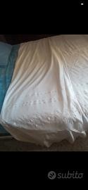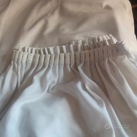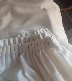 Due tende vintage di colore bianco grigio ( chiamasi bianco sporco). In buone condizioni, integre, in poliestere. Sono presenti delle macchioline vicino l' arricciatura superiore ma quando la tenda è montata, non si vedono. Erano fissate con gancetti a molletta. La lunghezza è di circa 2 m e 78/80 cm; la larghezza dell' arricciatura superiore è di circa 1 m e 38 cm l' una.
