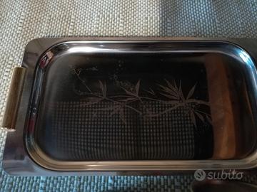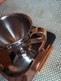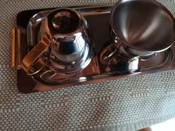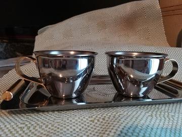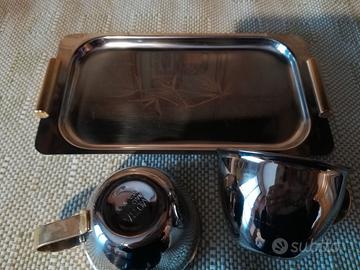 duetto caffè in acciaio con profili in oro decorazione sul vassoio. disponibile spedizione 10 euro a carico dell'acquirente