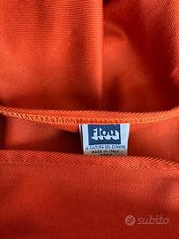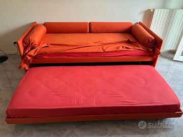 marca FLOU modello DUETTO - divano originale FLOU trasformabile in letto matrimoniale, colore arancione. completo di accessori originali FLOU: 2 reti a doghe, 2 materassi, copridivano e 4 cuscini rullo a caramella