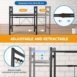 3.【Versatile and sturdy construction】This oven shelf is made of thick carbon steel sheet and can bear up to 25kg. The length of this microwave stand can be adjusted from 40-60 cm (15.75" - 23.62"), available in 2 different heights: 31 cm or 41 cm (12.2" or 16.14").