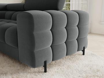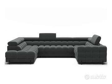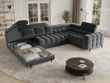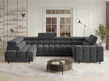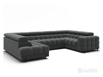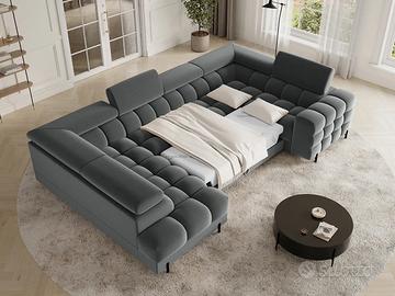 Il divano angolare Qatar, dallo stile moderno e dalle dimensioni di 346 x 205 x 93 cm, è una perfetta combinazione di funzionalità ed estetica. Dotato di molle ondulate di tipo B e di un doppio strato di schiuma – T3030 e profilata HR3030 – offre un elevato comfort sia da seduti che da sdraiati. Presenta una pratica funzione letto e un ampio contenitore per il materasso, ideale per l’uso quotidiano. Lo schienale imbottito permette di posizionarlo liberamente in qualsiasi punto del soggiorno, mentre le eleganti gambe in metallo verniciato a polvere nero completano il look, aggiungendo leggerezza e un tocco contemporaneo. Il divano angolare Qatar è una scelta elegante e funzionale per chi cerca un mobile ampio e confortevole con caratteristiche aggiuntive. Misure: lunghezza 346 cm – altezza 93 cm – profondità 205/205 cm – dimensione letto 247×123 cm Perché il divano Qatar è così speciale? Materiali robusti e di qualità: anima in legno massello e imbottitura in schiuma di poliuretano ad alta resilienza dalla densità di 40 kg/m3. Cinghie di sostegno in ferro per sostenere il peso e le sollecitazioni con maggiore resistenza Funzione letto: offre un posto comodo e funzionale in cui dormire, il che lo rende la scelta ideale sia per sedersi che per dormire. Box contenitore: un grande contenitore per la biancheria da letto è una soluzione pratica per riporre gli oggetti necessari. Posti: per 6 persone, offre spazio sufficiente per tutta la famiglia e gli amici Design: realizzato con attenzione ai dettagli, vi delizierà sicuramente con il suo design unico, la sua eleganza e il suo comfort. Versatilità: la configurazione angolare offre ampio spazio per sedersi e rilassarsi, mentre la chaise longue aggiunge un tocco di comfort extra Rivestimento: morbido tessuto resistente all’usura: i tessuti del rivestimento sono realizzati al 100% in poliestere di alta qualità, resistente agli strappi e all’usura.
