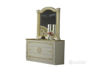 Il modello Letizia è pensato per coloro che apprezzano la bellezza dei mobili che raccontano una storia. Ogni elemento è curato nei dettagli, dalla specchiera con cornice sagomata che richiama la testiera, alla struttura robusta e duratura. È la scelta ideale per ambienti in stile classico, neoclassico o per chi desidera aggiungere un opulenza a un arredamento più contemporaneo. I materassi e le reti idonei per il letto 160×200 cm sono delle seguenti misure: 160 x 190/195/200 cm mentre per il letto 180×200 cm sono delle seguenti misure: 180 x 190/195/200 cm. La rete necessita di 4 piedi di sostegno. Il peso complessivo del gruppo letto Letizia è di 255 kg!