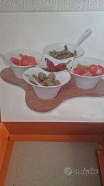 Bellissimo set da portata Buffet della Easy Life, in porcellana bianca e bambù. Perfetto per servire antipasti o stuzzichini.