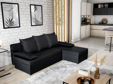 Il divano letto matrimoniale angolare ad L Nancy con box contenitore è un prodotto davvero originale e particolare ed ha, in primis, la caratteristica di avere un prezzo favoloso soprattutto perché si tratta di un articolo che, sebbene di dimensioni contenute, è completo di tutte le caratteristiche di altri divani dal prezzo più elevato. Il modello Nancy infatti è un divano angolare, sebbene dal costo contenuto, dalla linea semplice ed essenziale, che si trasforma in un letto da una piazza e mezzo e che è dotato anche di box contenitore. Questa è la soluzione perfetta per chi non vuole spendere una cifra elevata ma non vuole rinunciare a tutte le comodità del divano angolare con box e funzione letto. Il peso del modello Nancy è di 88 Kg!