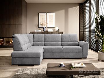 Il divano ad angolo Guatemala è una soluzione perfetta per le persone che apprezzano l’ordine e l’organizzazione. Aiuta a risparmiare spazio grazie al capiente box contenitore ed è dotato di funzione letto ribaltabile con una superficie di 205×125 cm. I suoi schienali regolabili, decorati con eleganti cuciture, renderanno anche le ore di relax un’esperienza comoda e confortevole e possono aiutarti a rilassarti comodamente mentre leggi un libro o guardi la TV. Elementi interessanti del modello Guatemala sono infine i piedini in legno alti 5 cm, così come il sedile imbottito con schiuma T30 che fornisce un’eccellente elasticità e alta densità. Divano angolare robustissimo e di qualità, dal peso di ben 131 Kg!