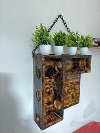 Realizzato interamente a mano, ogni pezzo è unico: il legno massello lavorato e bruciato esalta le venature naturali, donando un irresistibile effetto vintage rustico.