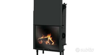 Edilkamin H2 Oceano 23 Termocamino a Legna Kw 23.0 Vaso Aperto. H2Oceano 23 è il termocamino a legna caratterizzato dalla caldaia che avvolge completamente il focolare aumentando la superficie di scambio. L'acqua viene riscaldata intorno e al di sopra del focolare, per alimentare i termosifoni e i pannelli radianti a pavimento di tutta la casa, con un rendimento all'acqua superiore all'80%. Il focolare in acciaio è adatto anche per la cottura
