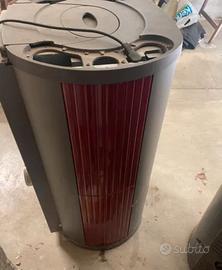 Stufa a pellet di piccole dimensioni MA POTENTE PER ESSERE PICCOLA, con scarico forzato e pannello sinottico con comandi a manopole (molto pratiche). Evoluzione del modello IRIS, la stufa più accesa in Europa, con restyling estetico delle ceramiche. Struttura interamente in ghisa, fianchi e inserti in ceramica bordeaux.