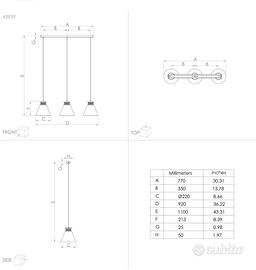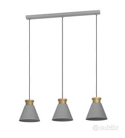 La lampada a sospensione TWICKEN è dotata di tre paralumi conici in metallo grigio e presenta dettagli dorati con accenti industriali. Questa elegante lampada a sospensione si integra perfettamente in stili di interior design moderni e illuminerà splendidamente il vostro spazio, sia in soggiorno che sopra il tavolo della sala da pranzo. Le lampadine non sono incluse. Il prodotto ha portalampada E27 e richiede lampadine E27