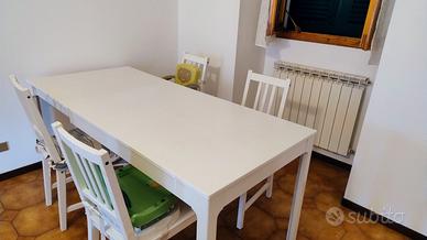 Praticamente nuovo, comprato per seconda casa. Vendo per trasloco. Incluse 4 sedie, in legno bianche coordinate al tavolo. Misure 120/180x80 Prezzo non trattabile