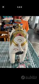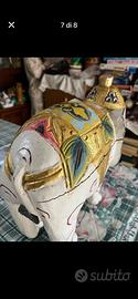 elefante tutto in legno con una crepa da restaurare.