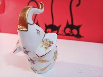 Elefantino in porcellana Limoges France decorato in oro. Nuovo in perfette condizioni. Rarissimo. Altezza 10cm.