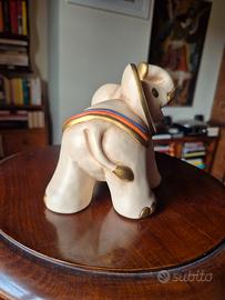 Elefantino Elly medio della collezione Icone di Thun in ceramica dipinta in colori delicati (pervinca e arancione) e finiture oro. Nuovo senza confezione originale, mai esposto. Le misure: lunghezza 10 × larghezza 9×h 11. Le eventuali piccole imperfezioni sono da attribuire alla fabbricazione e non all'uso.