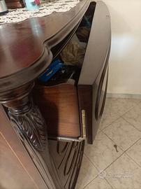 •Materiali: Realizzato in pregiato legno di noce con splendide venature in piuma di noce sui frontali dei cassetti.