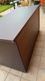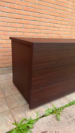 Elegante Cassettiera Marrone - 3 Grandi Cassetti (Soft-Close) Vendo capiente cassettiera in color marrone scuro, ideale per organizzare al meglio la camera da letto o la zona living. Un mobile solido, dal design lineare e moderno che si adatta a ogni ambiente. • Chiusura rallentata: I 3 cassetti sono dotati di cerniere con chiusura rallentata. Niente più rumori o colpi: basta una leggera spinta e il cassetto si chiude dolcemente da solo. • Grande Capienza: Grazie alla profondità di 55 cm, offre molto spazio per vestiti, biancheria o documenti. • Stato: Mobile in ottimo stato generale, molto robusto. Presenta solo alcuni piccoli segni di usura evidenziati nelle foto, che non ne influenzano minimamente l'utilizzo. Dimensioni: • Lunghezza: 124 cm • Larghezza (Profondità): 55 cm • Altezza: 63 cm