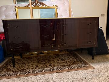 Vendo splendida cassettiera in stile classico/vintage, completa di specchio decorativo con cornice dorata finemente lavorata. Il mobile presenta una linea elegante con intarsi delicati sui cassetti e maniglie in stile, perfetto per arredamenti classici, retrò o shabby chic. Struttura solida e capiente, ideale per camera da letto o ingresso. Lo specchio è un vero pezzo distintivo: cornice riccamente decorata con dettagli ornamentali in rilievo, che dona carattere e raffinatezza all’ambiente. Caratteristiche: •Ampio spazio con più cassetti •Finitura in legno scuro lucido •Dettagli decorativi intarsiati •Specchio con cornice dorata lavorata •Struttura robusta