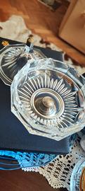 Splendido porta caramelle/bomboniera vintage in pregiato cristallo molato con lavorazione a raggiera. La base è in argento 800 punzonato, di manifattura fiorentina (marchio FI presente). L'oggetto è in condizioni eccellenti, senza crepe o sbeccature. unica cosa una piccola piega nel pomello sopra il coperchio.