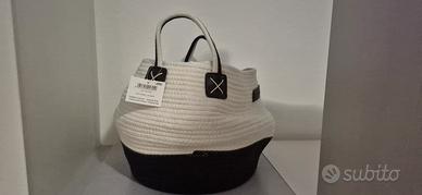 elegante cesto in corda blu e beige