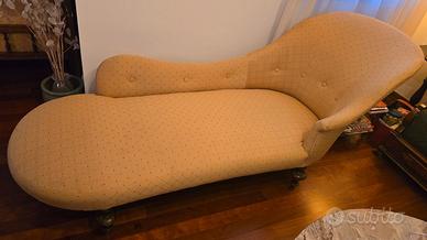 Affascinante Chaise Longue (o Dormeuse), un arredo di grande carattere le cui linee sinuose e l'asimmetria richiamano il raffinato Stile Biedermeier o Restaurazione del XIX secolo. In famiglia da due generazioni, porta con sé il calore della storia domestica.