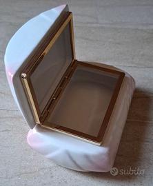 Materiale: Porcellana lucida con montatura e chiusura a scatto in metallo dorato.